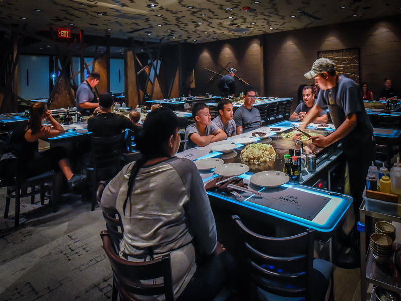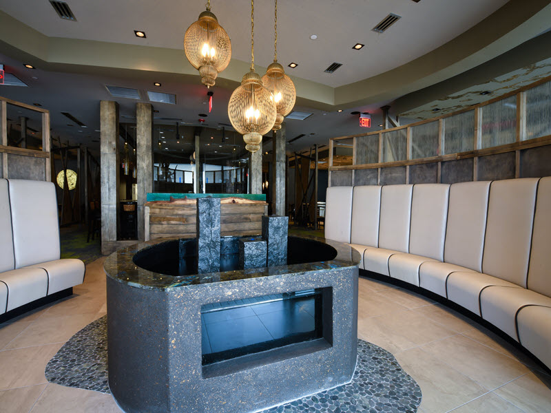 Similar to its other locations, the restaurant is approximately 8,600 square feet consisting of uniquely designed seating atmospheres. There are 11 teppan cooking tables, a themed sushi bar, traditional dining and a piano area. Construction included a full kitchen, complete interior finishes and of course, the signature Koi Pond foyer entrance.