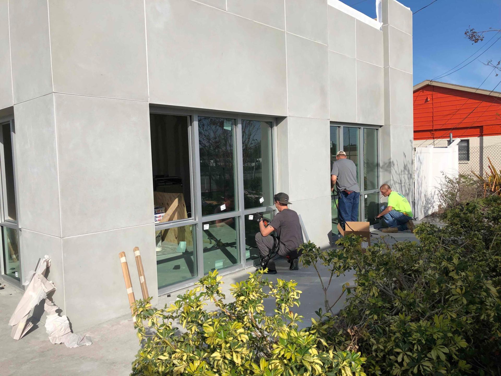 The office renovation consisted of the demolition of the entire interior and removing the existing roof. The building was constructed with an entire new storefront, roof system and completely new interior.